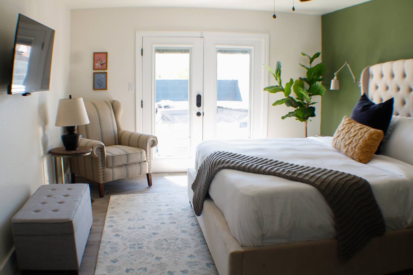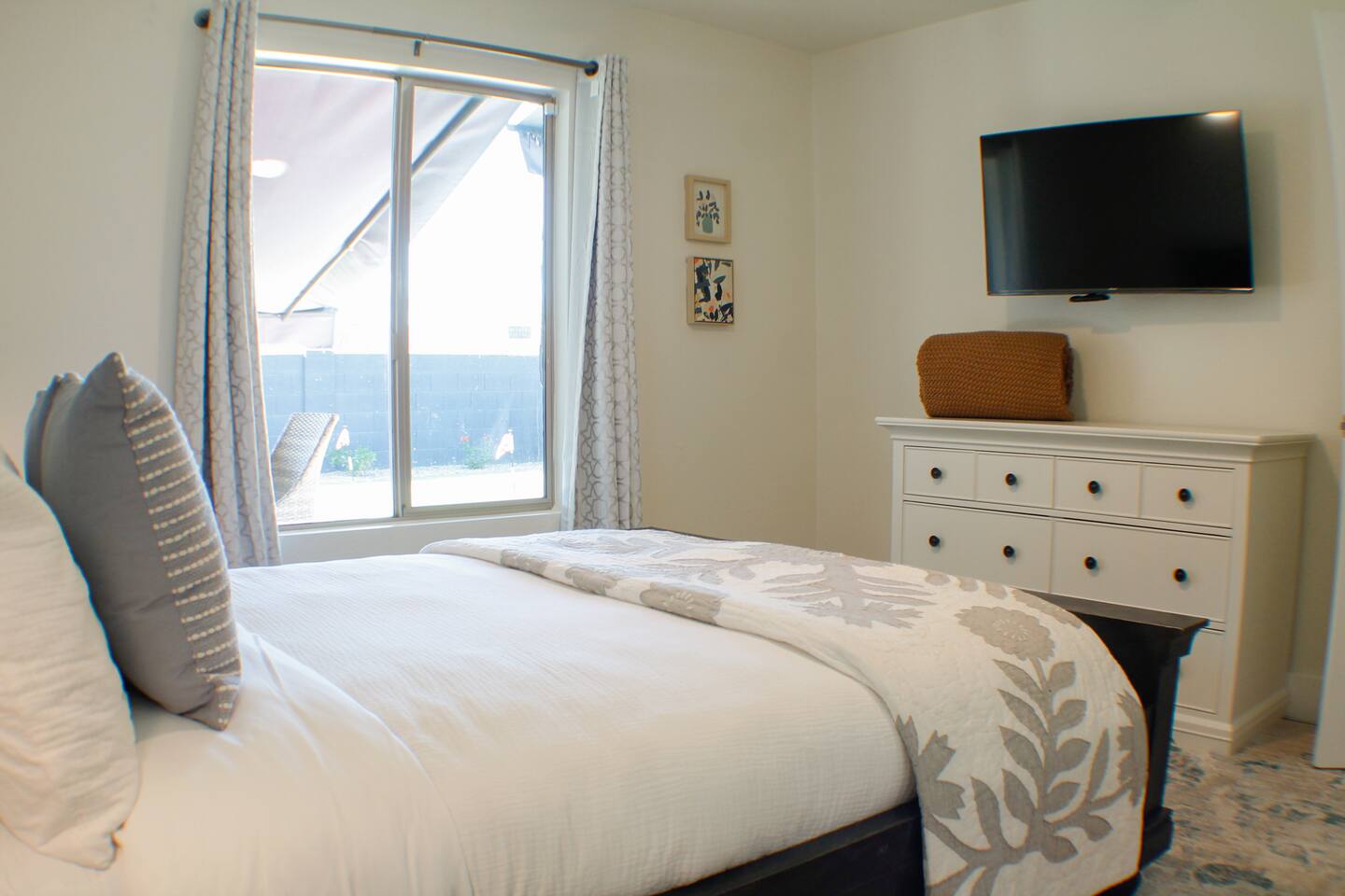 Quiet hours in the backyard are enforced from 9 pm - 8 am. For your safety and the safety of the home, we have three external security cameras installed to monitor points of entry. None of the cameras point towards interior spaces. There is one camera located in the side yard to allow monitoring of the RV gate. For long-term stays of at least 2 weeks, we do require the scheduling of mid-stay cleanings, during which you will have to be offsite for approximately 2-3 hours. You will be responsible for 50% of any extra required cleanings, not to exceed $100 per cleaning.