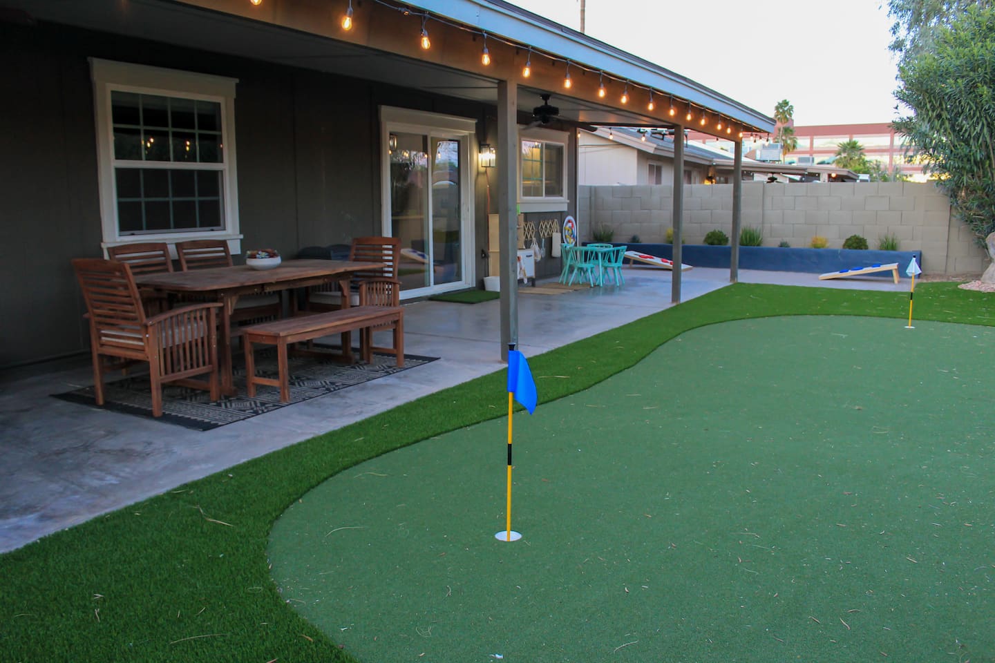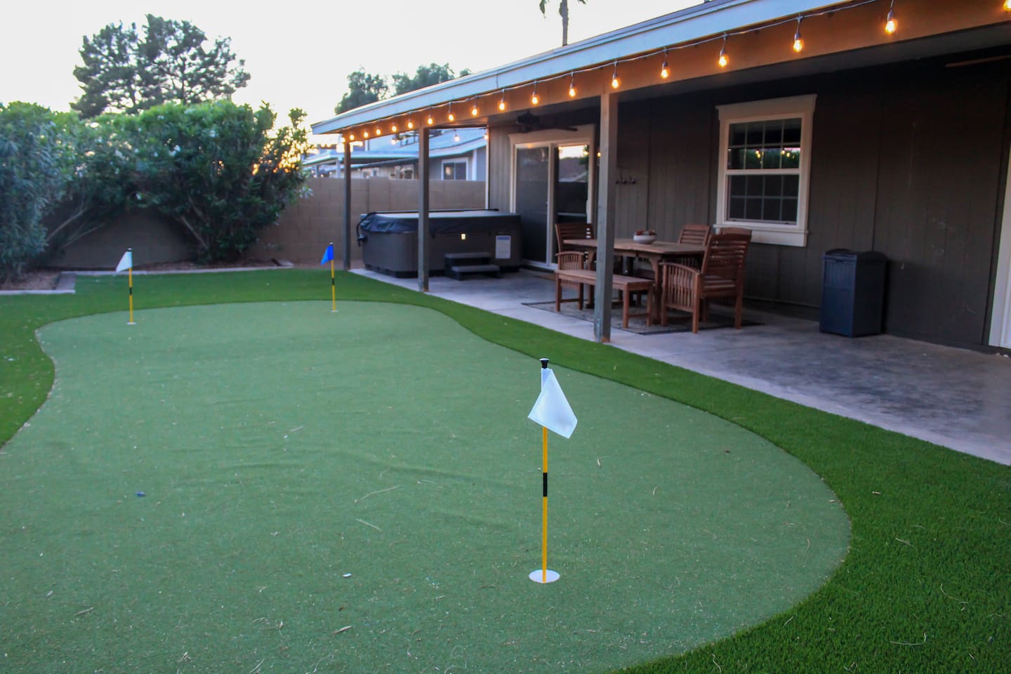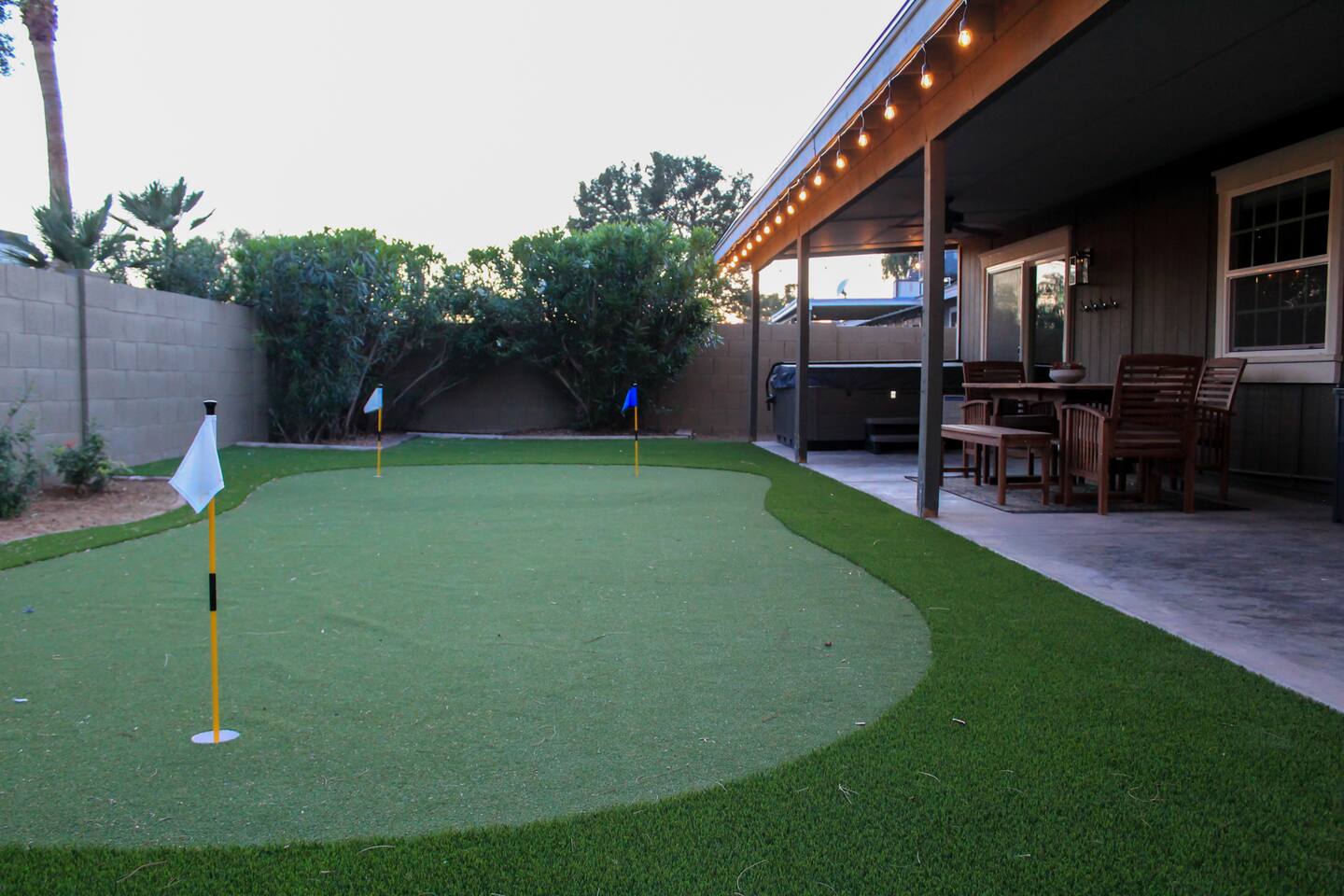 Impossible not to have a great time at this golfer's getaway home 5 minutes from top shopping, dining, & golfing. Includes: - Hot tub - Grill & outdoor dining/lounge spaces - TV's in all bedrooms & common areas w/YouTube TV - Dog friendly - Putting green - Kids play kitchen, toys, & books - Coffee/espresso bar - Office space & hi-speed WiFi - Washer/dryer - King bed in Master *NO GARAGE ACCESS* No partiers. If you want a fun, relaxing time w/family & friends, we'd love to host you!