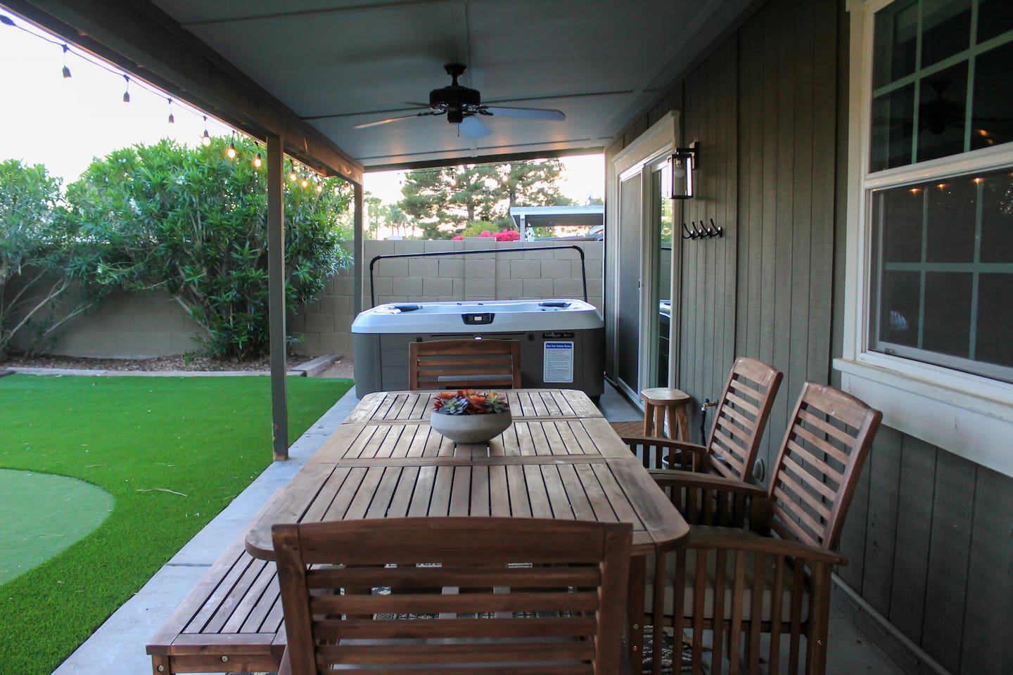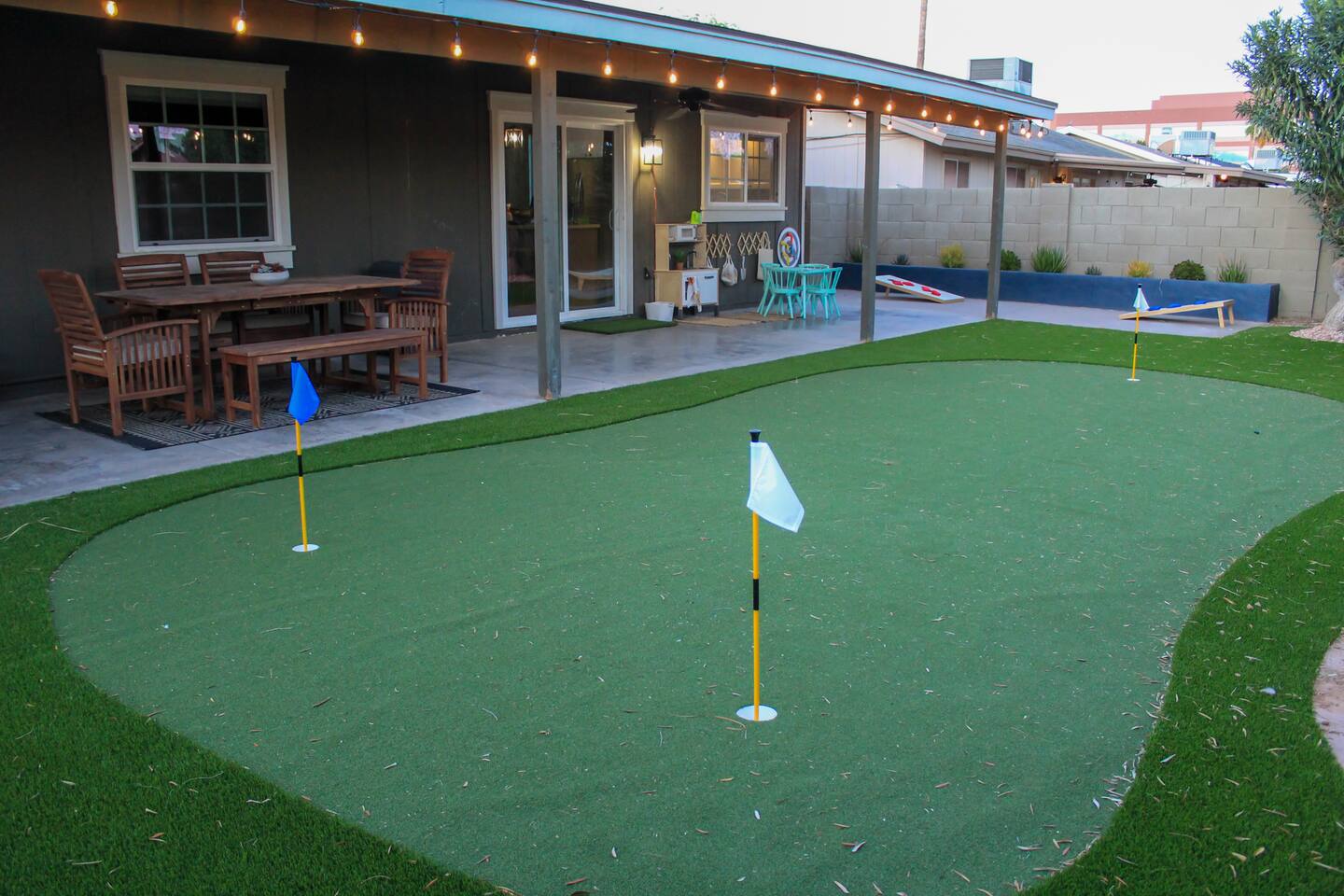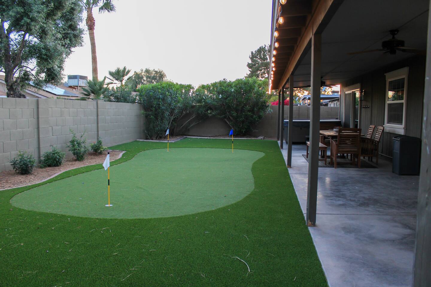Impossible not to have a great time at this golfer's getaway home 5 minutes from top shopping, dining, & golfing. Includes: - Hot tub - Grill & outdoor dining/lounge spaces - TV's in all bedrooms & common areas w/YouTube TV - Dog friendly - Putting green - Kids play kitchen, toys, & books - Coffee/espresso bar - Office space & hi-speed WiFi - Washer/dryer - King bed in Master *NO GARAGE ACCESS* No partiers. If you want a fun, relaxing time w/family & friends, we'd love to host you!